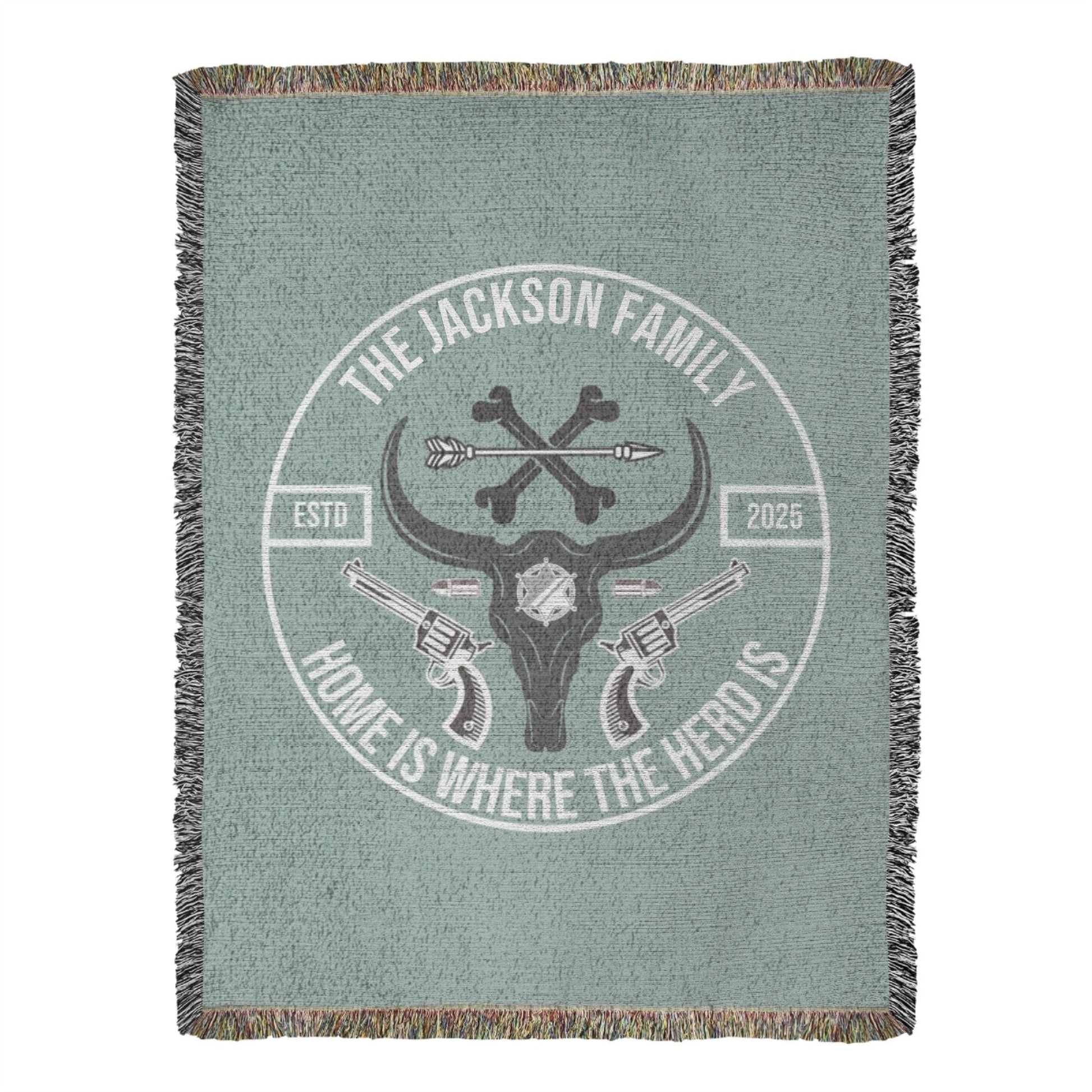 Home Is Where The Herd Is Personalized Western Family Woven Blanket